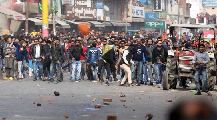 Protesters pelt stones at police during a protest in Lucknow on Thursday. (Express photo by Vishal Srivastav)