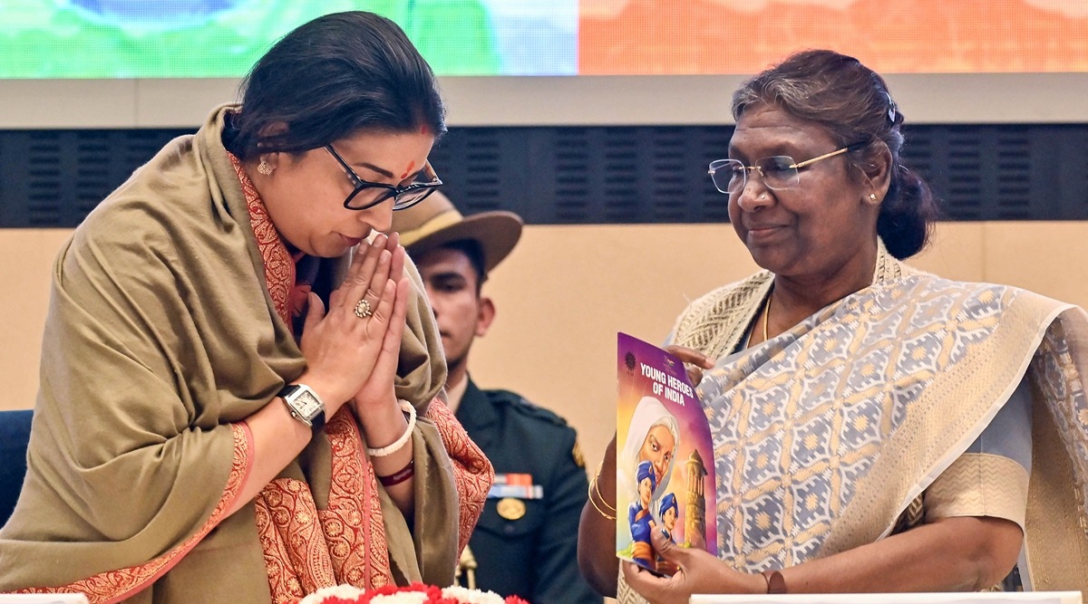 President Droupadi Murmu with Union Women and Child Development Minister Smriti Irani in Delhi on Monday. ANI