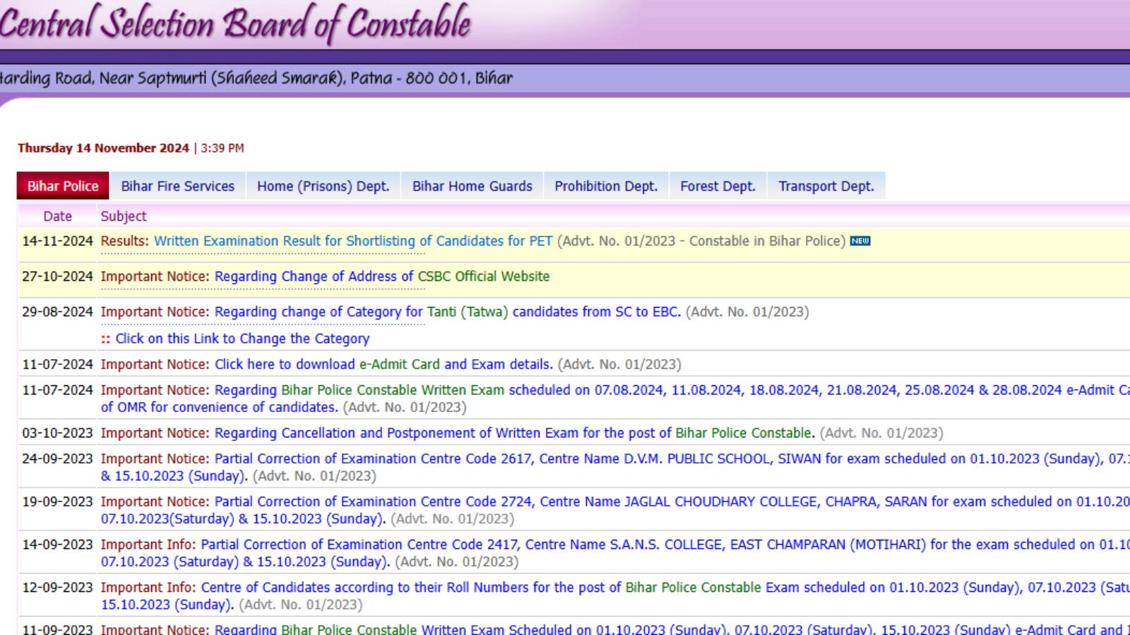 Bihar Police Constable Result 2024 Out: The Central Selection Board of Constables (CSBC) on November 14 announced the result of the Bihar Police Constable recruitment examination 2024 on their new official website — csbc.bihar.gov.in.