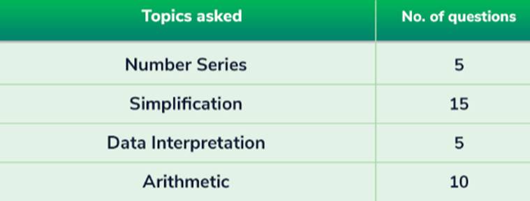 Quantitative Aptitude: This section has 35 questions to be answered in 20 minutes. The difficulty level of this section was between easy to moderate. One major surprise was that there were 15 questions from Simplification. Practising questions on BODMAS will help students in easily solving these questions. Some of the questions in this section were time-consuming.