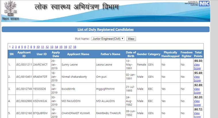 Talking to indianexpress.com, Joint Secretary, PHED, Ashok Kumar, said, “This is a mischief done by someone. The list has been uploaded as it is based on the data received by the candidates. Whoever filled their name, fathers’ name and other details in the application form, the list shows the same as is and no data has been entered by the department.”