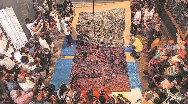 An art collective based in Sabah, the Pangrok Sulap, often engages with local communities to produce work in cities where they are exhibiting. On December 14, during a performance at the Biennale, the group unveiled their woodcuts that tell stories of the people of Kerala, calling it “Malayali’s Own Country”. A truck, meanwhile, carries the banner of the Kochi Biennale. “We want to raise issues such as the destruction of mother nature. We’re influenced by the DIY punk scene, which is against inequality and repression against the unfortunate,” says Jerome Manjat, one of the members of the collective.