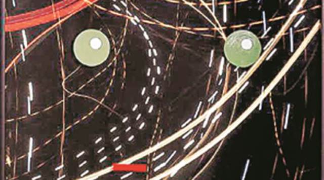 A galaxy filled with several bright white and yellow lines that are interrupted at many intervals — much like how cars plying on Delhi’s roads during peak hours have to press the breaks — form the dominant narrative in artist Aditya Pande’s “Ring Road Drawing” series.