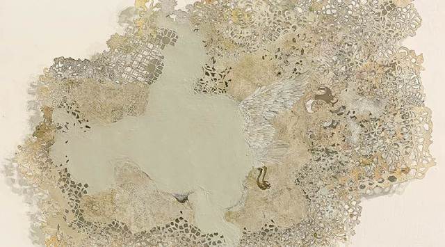The brief was simple yet complex: Chauhan wanted artists “to explore personal, historical, geological and cosmic time, investigate past traditions and beliefs, as well as old and new visual representations of the calendar as a measure of the passage of time”. With freedom to interpret and draw references, each artist has explored a varied facet. If Ruby Jhunjhunwala looks at time as a “series of frozen moments” and “frozen in a continuous moment”, for Manisha Gera Baswani time is “a companion in our journey gathering memories”. Gulammohammed Sheikh’s watercolour Between Famine and Floods reflects on the vagaries of nature, and Anindita Bhattacharya’s delicate work Thick as Guilt depicts the extinction of different species. Italian artist Tarshito Strippoli collaborates with miniature artists Raju and Mukesh Swami for his series that he describes as “Warriors of Love”,