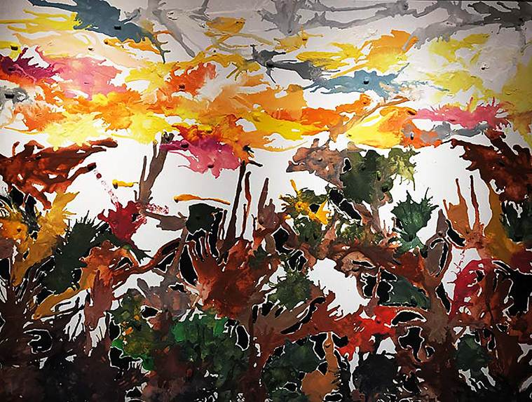After collecting several useless pieces of crayons, Hardikar melted them on canvas by using a heat gun. “I had an image in my mind initially and would place the crayons on the canvas and melt them. It happens sometimes that the flow of the melt is not how I had pictured it. That is the challenging part. Also, one has to be careful when handling a heat gun. After several attempts, we get adjusted to the method,” she says. In many of her paintings made from melted crayon, Hardikar has added details with paint.