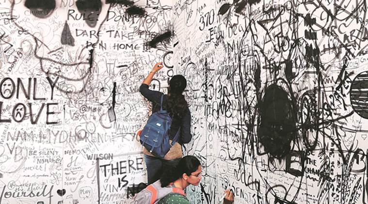 Visitors at the ‘Air-Ink’ exhibition.