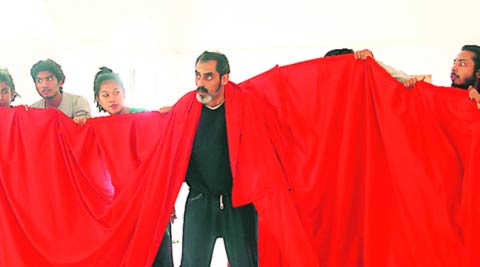 The play opens with the characters asleep under a red bedsheet made from a stage curtain. Only their feet are visible. To a haunting song by Olivia (Purnima Yengkokpam), they display the first signs of struggle when they pull the sheet this way and that to cover themselves and leave others cold. “In Commedia, every character is looking for his advantage. In Fired by Hamlet, the characters are not hungry, they are dying of hunger,” says Moritz.