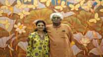 Standing tall A Ramachandran with student Manisha Gera Baswani; the artist with his sculpture, Monumental Gandhi.