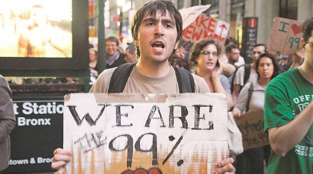 A protestor at an Occupy Wall Street rally in the USA in 2011. Wikipedia