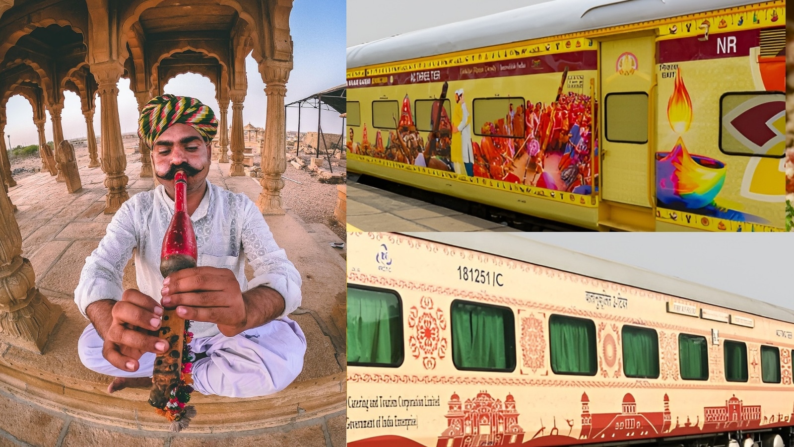 The exterior of these trains showcases popular Indian monuments, sculptures, landmarks, and dance forms etc having a total capacity of around 600 – 700 seats (photo: twitter/irctc)