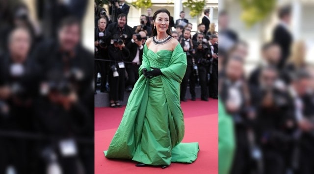 Michelle Yeoh cut a glamourous figure in a sleek green maxi dress with a co-ordinating cape. She complemented the look with an edgy white and black necklace, diamond earrings and black opera gloves. Styling her hair in a sleek fashion, she opted for minimal makeup. (Photo by Scott Garfitt/Invision/AP)