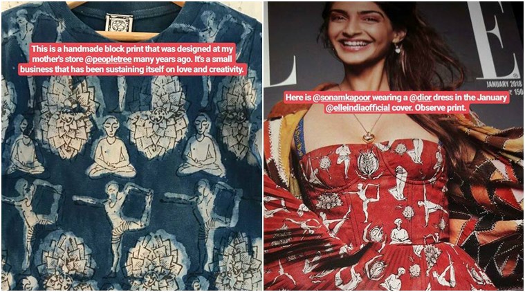 Among those calling out Dior are Gurpreet Sidhu, whose Facebook bio shows she has “worked at the People Tree” and Pakhi Sen, who has uploaded pictures of handmade block print of one of the garments in their store, while comparing it with the print on Kapoor’s Dior outfit on the magazine. Sen, in one of the three pictures, has claimed that the handmade block print was created many years ago at People Tree, where her mother works.