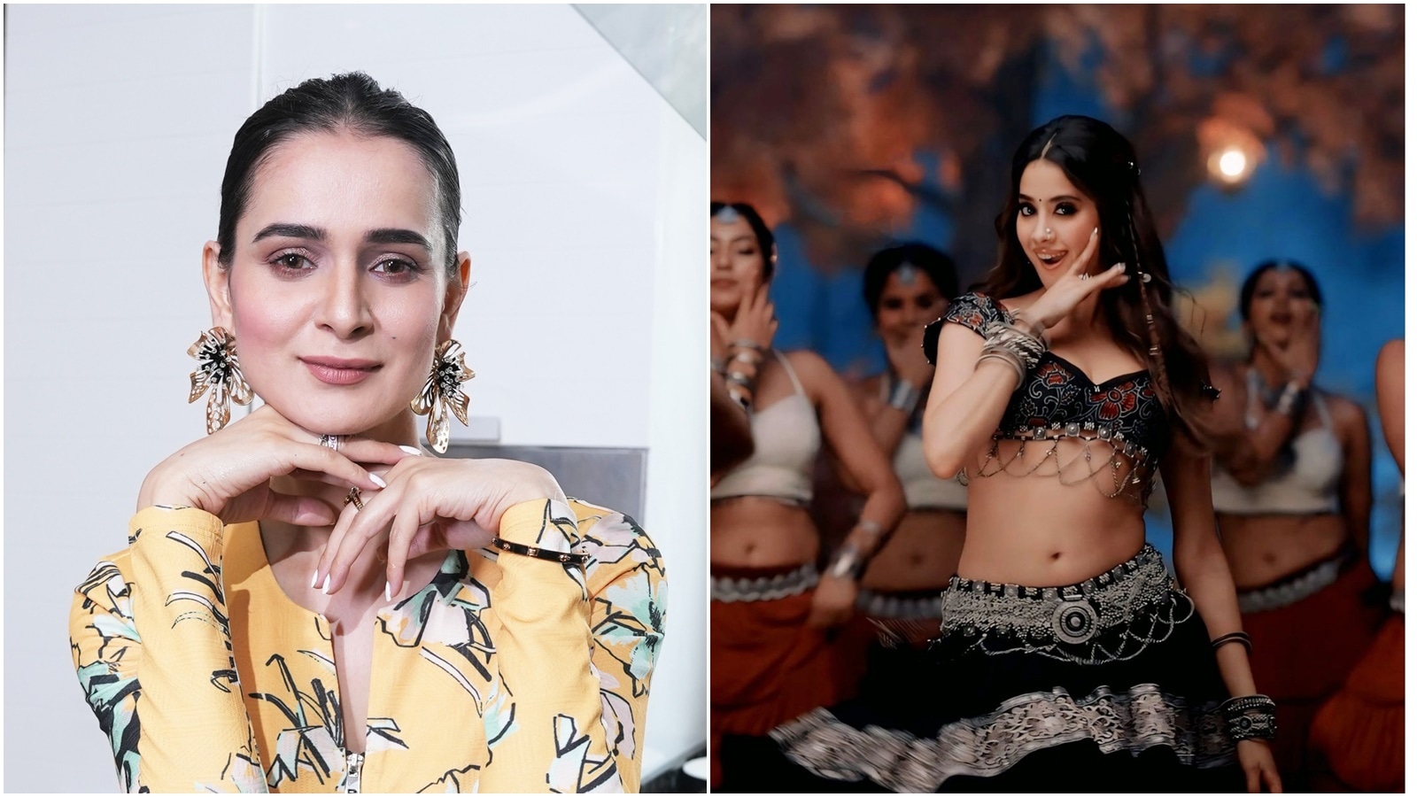 The song’s concept revolves around a dream sequence featuring the lead pair set in a simple village backdrop. “The characters imagine their glamorous avatars, so Janhvi‘s outfits were re-envisioned as dazzling, princess-like versions of everyday village wear. To complement the heavy beats and bold choreography, her look was enhanced with a sari-inspired asymmetric skirt, accentuating her hip line and allowing fluid leg movement. We added cowls and drapery to create a sensual, goddess-like aesthetic, reimagining her as a glam princess with a mermaid-like silhouette in a coastal village,” explained Bajaj, 38.