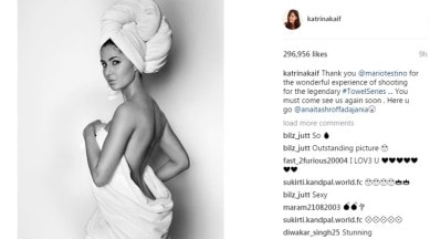 Bollywood actress Katrina Kaif became the first Indian celebrity to feature in Mario Testino’s Towel Series and the 135th towel-clad public personality to pose for the photographer. The actress who joined Instagram on April 27 shared the photo thanking Testino.