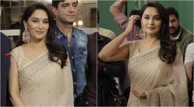 Madhuri Dixit looks ethereal in an Anita Dongre sari. (Source: Varinder Chawla)