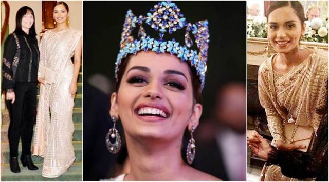 If anyone has ever had a string of fairy tale fashion moments these past few weeks, it is Manushi Chhillar. From being resplendent in Sabyasachi saris to donning Manish Malhotra designs, the 20-year-old has been giving us ethereal looks ever since she was crowned Miss World. Recently, the Haryana girl was snapped in London alongside Julia Morley, Chairman and CEO of Miss World. Chhillar, who mostly goes with the more, the better formula, was decked in a Tarun Tahiliani gold sari and looked pretty as a picture. We like the full-body gold geometrical pattern in gold that could easily have been too much, but the alternate light and dark hues set just the right tone, making the sari a lovely piece; the nude border on the pallu nicely contrasting the rest of the gold work. Stylist Sheefa J Gilani teamed the sari with long jhumkis and we think keeping it easy in the accessory department was a wise move, given the bling effect of the sari. Chhillar rounded out her look with dewy make-up and a sleek chignon and we think she nailed it. But what really works is the way she's draped the sari. Although it looks like the usual side pallu at first glance, notice how the stylist has draped the pallu over her shoulder and brought it out to the front on the other shoulder, giving a shawl-like, regal effect. Catch a glimpse here. In yet another London look, Chhillar gave us some retro-classic vibes. She paired a printed red Tommy Hilfiger tee with a pair of flared denim jeans and added layers with a chic leather jacket. The frayed hems and detailing on the thigh added an interesting element to her attire. The high ponytail and yellow reflectors she donned were reminiscent of the 1990s and we like the open-toe heels she rounded off her look with. We love both of Chhillar's looks but what about you? Let us know in the comments below.