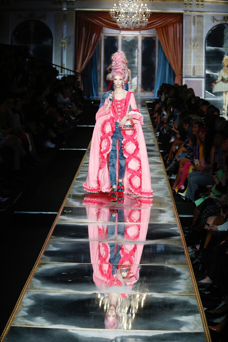 Moschino’s fun and wacky show took the Milan Fashion Week by storm. To begin with, the designer went full-blown Marie Antoinette in an obvious homage, as models walked the runway in pink ballgowns that resembled scrumptious pastries.