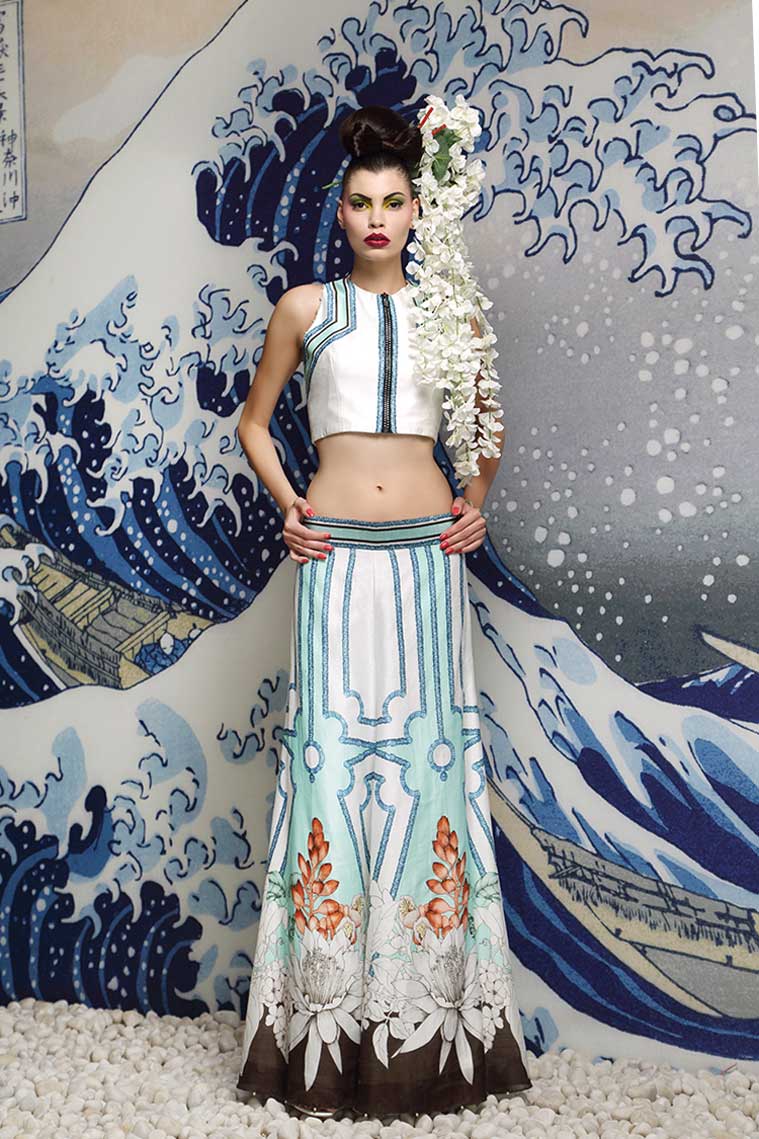 The collection will introduce the new vision of contemporary aesthetics and will bring together the unusual multicolored prints and fabrics. “For summers, I have tried to keep the silhouettes very simple yet very contemporary in their feel by doing placement art work of prints and creative use of Japanese architectural line art. Moreover lots of graphics have been engineered to the pattern of the garment,” says the designer.