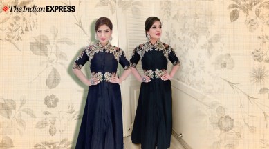 Styled by Bornalii Caldeira, Raveena looked gorgeous a long, black kurti which was teamed with fitted pants in the same colour.