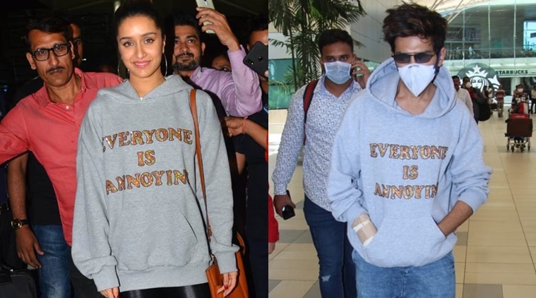 While actor Shraddha Kapoor’s sartorial choices are known to be comprehensive — from flowy summer dresses to a chic gown, and an elegant kanjeevaram sari, Kartik Aaryan likes to keep it dapper in chinos and sauce suits. A while ago, however, both the actors stepped out at the airport in the exact same sweatshirt, and safe to say we liked both the looks. Check them out below.