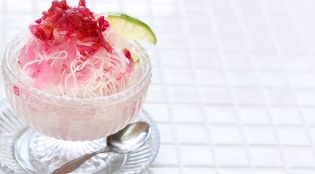 * To make faloodeh, take rice noodles in a pan and add boiling water to them. Simmer the mixture on a flame for five to ten minutes.