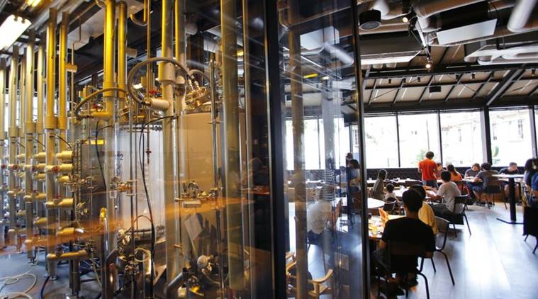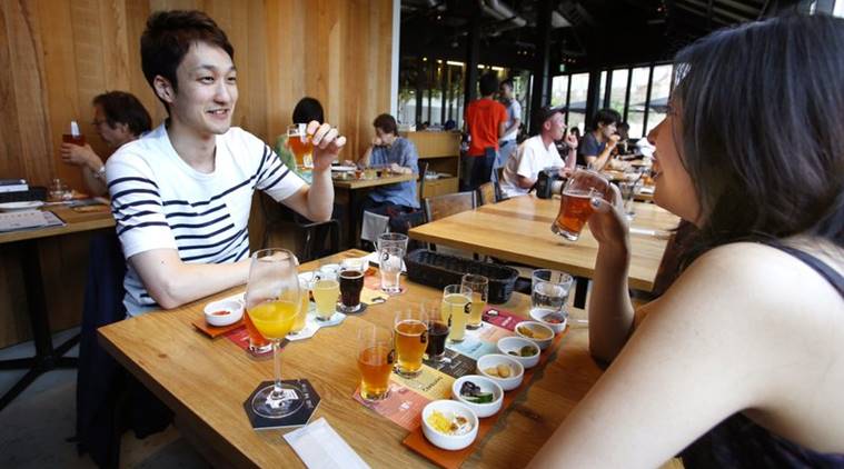 In this photo, visitors enjoy lunch at a beer restaurant Spring Valley Brewery in Tokyo. Major beer maker Kirin opened a craft brewery – still relatively uncommon in Japan – in Tokyo’s fashionable Daikanyama district two years ago: Spring Valley Brewery. Kirin’s brewery has a western menu, spacious terrace and beers with names like DayDream and Jazzberry that are brewed behind transparent walls. (AP Photo/Shizuo Kambayashi)