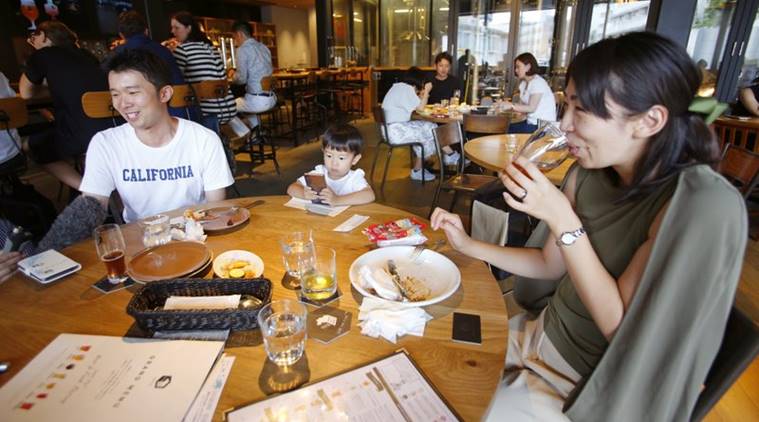 photo, Shizuka Nagasawa, right, drinks beer with her husband Keita Nagasawa and son at Spring Valley Brewery in Tokyo. Major beer maker Kirin opened a craft brewery – still relatively uncommon in Japan – in Tokyo’s fashionable Daikanyama district two years ago: Spring Valley Brewery. Kirin’s brewery has a western menu, spacious terrace and beers with names like DayDream and Jazzberry that are brewed behind transparent walls.(AP Photo/Shizuo Kambayashi)