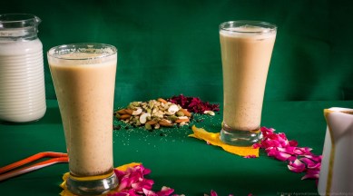 * For making thandai, take 1 cup of milk and about 1/4 cup to 1/3 cup of the concentrate and give a whisk.