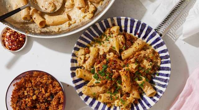 A creamy cauliflower pasta with pecorino bread crumbs is prepared in New York. This pasta does not compromise. It’s comfort food, but also mostly vegetables. It’s complex but quick. Styled by Kalen Kaminski. (Source: The New York Times)
