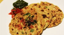 Tikkad is a typical Rajasthani bread especially in the desert areas. I first had it when I was visiting a village in Jodhpur for my research on eGovernance in rural India. I remember it was a hot summer afternoon and I was going from one home to another. As is customary of rural hospitality between 10 am to 1pm I had covered 15 homes and 15 cups of very sweet tea! We decided to do one more home and then take a break for lunch and to our surprise the lady of the house asked us to have lunch. She was very shy about it saying she has only made tikkad but she would really like us to join her. My friend and I were famished and that pyaaz tamatar ka tikkad and chutney was one of the best meals I had!