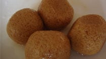 * Form small balls of this chenna and steep them in boiling sugar on high flame.