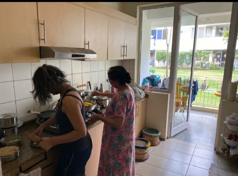 Lavanya Tagra and her mother cooking for the elderly in Gurgaon.