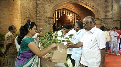 For the Reddy wedding, the one-page simple invite was on recycled paper, and the family made a “no gifts-no bouquets” appeal to guests. The decorations consisted of 5,000 potted plants, reusable natural cloth and paper flowers. The fare was not just vegetarian but vegan, in keeping with the couple’s dietary sensibilities. The ritualistic “tamboola” return gift usually consisting of coconut, betel leaf and sweets made way for neem, sandal and mango saplings as takeaways. Describing the thought behind the green wedding, the bride said simply, “I have grown up this way.”