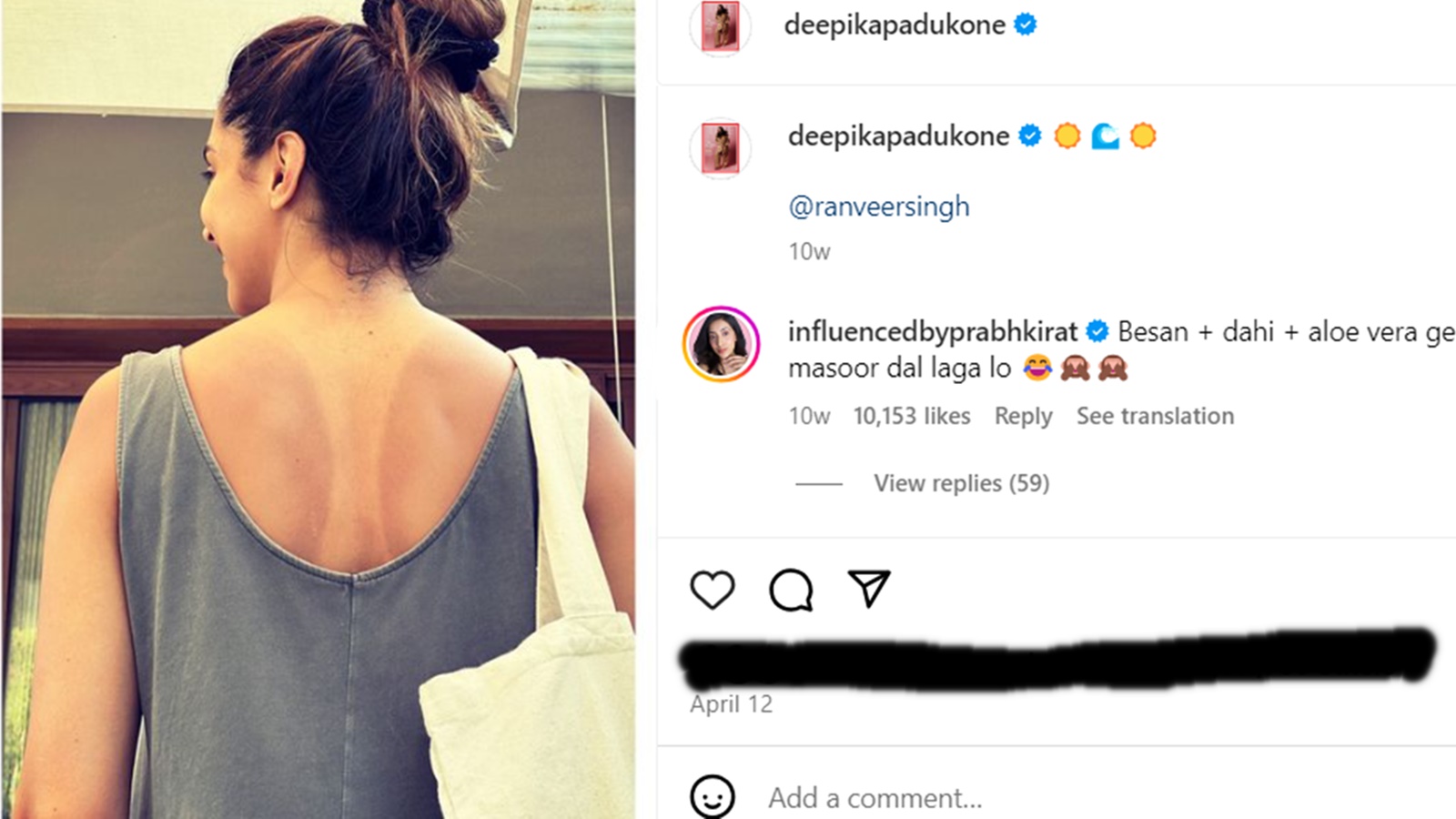 Influencer Prabhkirat Kaur had no idea that her comment on Deepika Padukone‘s beach tan picture would amass more than 10k views! Recall that the mom-to-be had flaunted her back tan while on a babymoon with husband-actor Ranveer Singh. The couple is expecting their first child in September.