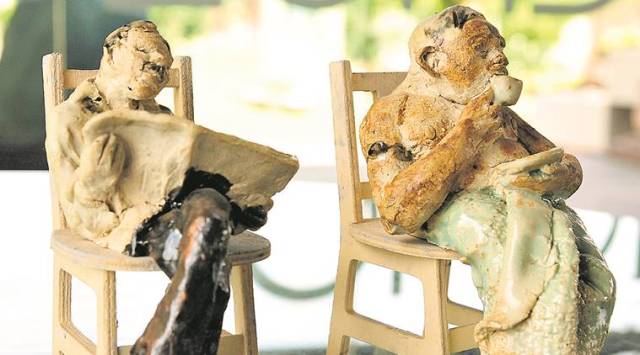 When Gurgaon-based artist Megha Joshi attended the artists’ residency themed around migration at Art Ichol, an arts centre in the village of Ichol, Maihar, Madhya Pradesh, she pondered over how people think of identity in terms of ethnicity or nationality. Observing how people move around for various reasons, be it for marriage, asylum, refuge, love, education or economic reasons, she began thinking about the idea of home. As she visited ancient Hindu temples in the vicinity, she observed the innermost sanctum housing the murti, called the garbha griha, where garbha refers to the womb and graha stands for home. She says, “I realised that the womb is our first and only home. Every human being has had their first home and after birth it has only been a matter of constantly moving and searching, either by circumstance or choice.” It comes as no surprise that her sculpture titled Garbha-Griha - The Womb Is The Only Home, at Triveni Kala Sangam, made using ceramics, wood and vermillion, has two hands forming the yoni mudra (yoni translates to uterus in Sanskrit). The exhibition “The Art Ichol Sculpture Show” features 50 Indian and international artists, including well-known Japanese ceramic artist Saturo Hoshino and German artist Julia Klemm, displaying sculptures made using bronze, stone and ceramics. These were created during the artist-in-residence programmes at Art Ichol, a platform that encourages the creation and sharing of creative arts. Ambica Beri, the founder of Art Ichol, says, “It is in the middle of rural India, with world-class facilities for bronze-making, stone-making and ceramics. Many international artists have been here in the last three years. I felt that the work from here needs to be shared in an exhibition.” Glossy cow sculptures in ceramic reveal the creative genius of Uday Singh, a farmer, who turned up at the centre and told Beri how he liked creating with his hands. He soon learnt the art of making sculptures, taking tips from master artists visiting the premises. Renowned artists Laxma Goud, Anupam Sud, Jayasri Burman, and Paresh Maity have visited the centre. Beri says, “There is also skill development and engagement with the community. Now this is an alternate profession for Singh. His works were sold out at shows. He no longer does farming.” Tiny bronze sculptures by Kolkata-based artist Debabrata De ring in the magic of everyday. Old men sitting on a park bench gossip - a classic view during a stroll at most parks - while two men are seen reading the morning newspaper perched on chairs. “Long before malls became popular, as a child growing up in the ’60s, I would often come across such scenes everyday in the streets of Kolkata.” Western Australia artist Holly O’Meehan brings out the interplay between crochet and ceramics, with brown and off-white vases. Their top part is made of local yarn and rope, and the lower half is sculpted in ceramic. The exhibition closes on December 9