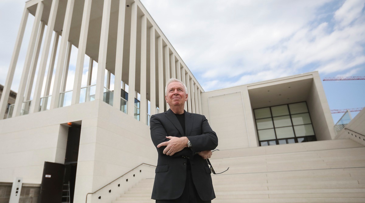 Architect David Alan Chipperfield poses outside of the James-Simon-Galerie at the 'Museumsinsel', (Photo/Markus Schreiber, File)