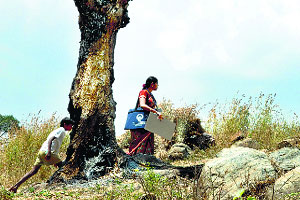 They have been traversing this region,these two: Alagumalar,25,the young woman from the plains of Madurai,and her local guide Madhavan,a third standard student of the panchayat school where she teaches.