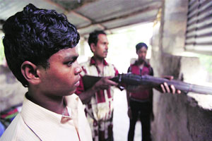 We are not SPOs. We are regular policemen. The diffidence with which the three boys speak and their youthful looks belie their claim. Madkam Nanda,Vetti Ganga and Podiam Edma stand guard at a ramshackle watch-post perched on top of a government dispensary at Dornapal in Dantewada in the Naxal heartland. They have no guns in their hands. Their 12-bore rifles stand retiredbutt down in a heap in a corner with a cloth thrown over them.