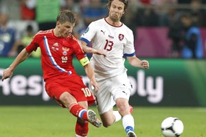 The second game of the European Championship between Russia and the Czech Republic pitted Arshavin against his Arsenal teammate Rosicky,with both players captaining their countries and wearing the coveted No. 10 shirt in their first head-to-head at international level.