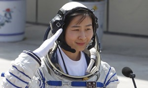 Female astronaut Liu Yang,33,and two male crew members _ veteran astronaut Jing Haipeng and newcomer Liu Wang _ are to dock the spacecraft with a prototype space lab launched last year in a key step toward building a permanent space station. They are to work there for about a week.