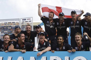 Craig Krieswetter struck a sparkling 63 as England were crowned Twenty20 world champions after crushing Australia by seven wickets in the summit clash to win their maiden ICC tournament title.