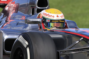 McLaren's Lewis Hamilton took pole position for the season-opening Australian Grand Prix on Saturday ahead of team mate Jenson Button as world champion Sebastian Vettel was banished to the third row of the grid. The Briton's best lap of one minute 24.922 seconds put him just ahead of compatriot and fellow former world champion Button,who was second quickest in 1.25.074 and will make up an all-McLaren front row for the first time since 2009. French driver Romain Grosjean sprung the biggest surprise by steering his Lotus to the third fastest lap and he will line up alongside the Mercedes of seven-times world champion Michael Schumacher on the second row. Vettel,who claimed a record 15 pole positions last season including on his way to victory at Albert Park,was sixth fastest just behind his Red Bull team mate and Australian hope Mark Webber in fifth. It's an incredible feeling to be back here and to get off to such a good start,said Hamilton,who won at Albert Park from pole position in 2008. I think it's my and Jenson's first one-two in qualifying so it's fantastic to start the season this way. It's going to be incredibly tight and tense in the race. Button was equally delighted to lock up the front row for McLaren for the first time since Hamilton and Heikki Kovalainen at the 2009 European Grand Prix. It is only the beginning but this is great first result for us on a Saturday and it looks like it's going to be a very exciting season,Button,who won in Melbourne in 2009 and 2010,said. Vettel said it was too early for Red Bull,who took 18 poles in 19 races last year,to panic despite Sunday marking the first time they will not have a driver on the front row since the 2010 Italian Grand Prix at Monza. We are not starting at the front but we are not starting at the back either,so it's far from from disastrous and regarding the car,we know what we need to do,he said. Mercedes driver Nico Rosberg and Pastor Maldonado of Williams will be on the fourth row of the grid after finishing seventh and eighth quickest. Ferrari's problems continued with both cars failing to reach the final round of qualifying. Former world champion Fernando Alonso spun off into the gravel in the second session while running fifth fastest and will line up 12th on the grid,while Brazialian Felipe Massa's miserable run of form continued with the 16th fastest time. Another former world champion,Kimi Raikkonen,made a mistake on his final flying lap and failed to get through the first phase of qualifying on his return to Formula One with Lotus after two years away. The former Sauber,McLaren and Ferrari driver also suffered the embarrassment of being resoundingly outqualified by the inexperienced Grosjean,who has never raced at Albert Park and will be starting his eighth race on Sunday. It's really nice to be back in Formula One and I enjoyed the time,said the 26-year-old,who last raced for the then Renault team in 2009. I'm very proud to be with those guys here and hope we can keep going that way all season long and then it will be a very nice story. The two HRT cars both failed to get inside 107 per cent of the best time in the first session and therefore failed to qualify for the race for the second successive year.