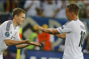 Lukas Podolski opened the scoring for Germany in the 19th minute and Lars Bender slotted home the winner in the 80th after Michael Krohn-Dehli had equalized for Denmark in the first half.