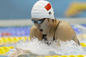 Ye,who has so far won two gold medals and broken a world record at the London Games,clocked a time for the last,freestyle lap of her medley swim that rivalled the male champions.