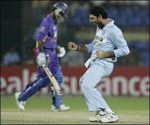 Yuvraj’s belligerence finally came to an end when he was caught by Jayawardene off Muralitharan. Sehwag soon joined him in the pavilion being run out off a direct hit from Jayasuriya.