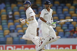 Dravid now had his long-stand partner Laxman at the other end who withstood all that West Indies could muster from its four-pronged attack. Both took India to tea without any further loss at 143 for 2.