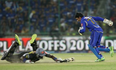 However,Shane Watson kept on belting boundaries — five of them — as the Royals raced to 50 in the seventh over before the Aussie all-rounder was sent back due to an inspirational piece of fielding by Sammy.