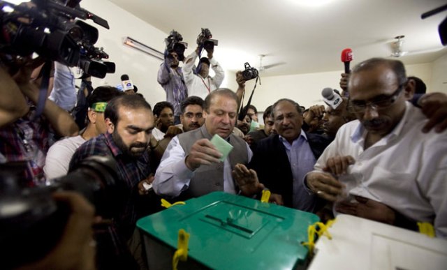 Former Pakistani Prime Minister Nawaz Sharif declared victory following a historic election marred by violence Saturday,a remarkable comeback for a leader once toppled in a military coup and sent into exile. The 63-year-old Sharif,who has twice served as premier,touted his success after unofficial,partial vote counts showed his Pakistan Muslim League-N party with an overwhelming lead. The party weathered a strong campaign by former cricket star Imran Khan that energized Pakistan's young people. Sharif expressed a desire to work with all parties to solve the country's problems in a victory speech given to his supporters in the eastern city of Lahore as his lead in the national election became apparent based on vote counts announced by Pakistan state TV. The results,which need to be officially confirmed,indicated Sharif's party has an overwhelming lead but would fall short of winning a majority of the 272 directly elected national assembly seats. That means he would have to put together a ruling coalition,which could make it more difficult to tackle the country's many problems. "I appeal to all to come sit with me at the table so that this nation can get rid of this curse of power cuts,inflation and unemployment,'' Sharif said. Despite attacks against candidates,party workers and voters that killed 29 people Saturday,Pakistanis turned out in large numbers to elect the national and provincial assemblies. The high participation was a sign of Pakistanis' desire for change after years of hardship under the outgoing government,and it offered a sharp rebuke to Taliban militants and others who have tried to derail the election with attacks that have killed more than 150 people in recent weeks. "Our country is in big trouble,'' said Mohammad Ali,a shopkeeper who voted in Lahore. ''Our people are jobless. Our business is badly affected. We are dying every day.'' The vote marked the first time a civilian government has completed its full five-year term and transferred power in democratic elections in a country that has experienced three coups and constant political instability since it was established in 1947. The election was being watched closely by the United States,which relies on the nuclear-armed country of 180 million people for help fighting Islamic militants and negotiating an end to the war in neighboring Afghanistan. Passion and energy were seen throughout Pakistan,as millions of people headed to the polls,waving flags and chanting slogans in support of their party. Some were young,first-time voters and others elderly Pakistanis who leaned on canes or friends for support as they dropped their vote in the ballot box. One man,Bilal Masih,even came to a polling station in the central city of Multan dressed in his wedding attire,saying his bride could wait until he voted. He decorated his wedding car with flowers and a stuffed tiger,the symbol of the Pakistan Muslim League-N party he supports. "I thought that this was my national duty,'' said Masih,who was wearing a white and red turban and had garlands of flowers around his neck. The Pakistani Taliban,which has been waging a bloody insurgency against the government for years,tried to disrupt the election because the militants believe the country's democracy runs counter to Islam. The government responded by deploying an estimated 600,000 security personnel across the country to protect polling sites and voters. Many Pakistanis seemed determined to cast their ballots despite a series of gun and bomb attacks. "Yes,there are fears. But what should we do?'' said Ali Khan,who was waiting to vote in the northwestern city of Peshawar,where one of the blasts took place. ''Either we sit in our house and let the terrorism go on,or we come out of our homes,cast our vote,and bring in a government that can solve this problem of terrorism.'' Many of the attacks in the run-up to the vote targeted secular parties. That raised concern the violence could benefit hard-line Islamists and others who take a softer line toward the militants,like Sharif and Khan,because they were able to campaign more freely. The chief of Pakistan's election commission,Fakhruddin Ebrahim,said turnout was near 60 percent of registered voters,the highest since the 1970 election. Many Pakistanis expressed pride that so many of their fellow citizens chose to vote. "More political activity means more awareness,'' said Nasira Jibran in Lahore. ''More awareness means more accountability.'' The apparent victor,Sharif,is best known for testing Pakistan's first nuclear weapon in 1998. He is the son of a wealthy industrialist,and his party is seen to have a pro-business stance. Sharif was toppled in a military coup by then-army chief Gen. Pervez Musharraf in 1999 and spent years in exile in Saudi Arabia before returning to the country in 2007. His party came in second in the 2008 elections to the Pakistan People's Party and is seen as more religiously conservative. Sharif faced a strong challenge from Khan's Pakistan Tehreek-e-Insaf party. The winner of the 1992 cricket World Cup tapped into the frustrations of many Pakistani youths fed up with the country's traditional politicians. "It's now our turn. We youngsters want our say in national affairs,'' said voter Rubina Riaz in Lahore. Khan couldn't vote Saturday because he was in the hospital following a horrific accident this week at a campaign event in Lahore in which he fell off a forklift and broke three vertebrae and a rib. Sharif countered the challenge from Khan by pointing out how much more experience in government he has and touting key projects he completed while in office,including a highway between the capital Islamabad and his hometown of Lahore. "It's all about delivering,'' said Nayyar Naseem,a voter in Lahore. ''Nawaz Sharif has delivered. He is experienced.'' Sharif also relied on old-style Pakistani politics,which focuses on doling out political patronage,such as government jobs,to win the loyalty of voters. The battleground