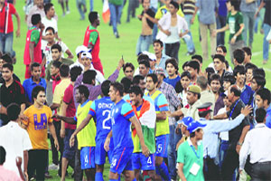 It would go on until the tenth penalty kick. India somehow kept their end up through all this. Robin Singh,Chettri,Denzil Franco,Mehtab Hossain and Clifford Miranda all converted. Cameroon kept up the pressure,like they had done all match.