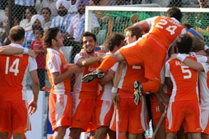 But it was the Dutch who took the lead in the 22nd minute through a superb goal from captain Teun de Nooijer whose deflection off a pass from Jeroen Hertzberger went past English custodian James Fair into the goal.
